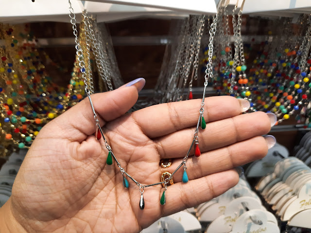 Os colares são de R$ 5,00 R$ 7,00 R$ 8,00 e R$ 10,00. As peças são de fabricação própria com resina nacional e pedras originais.